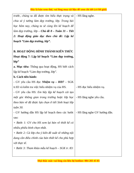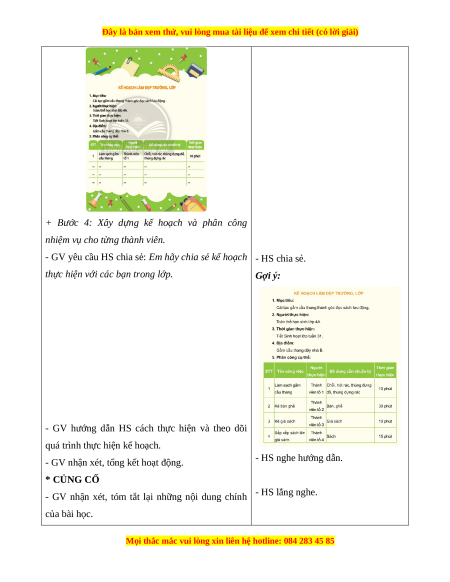 - HS tham gia hoạt động làm kế hoạch nhỏ. b. Cách tiến hành