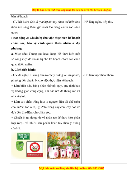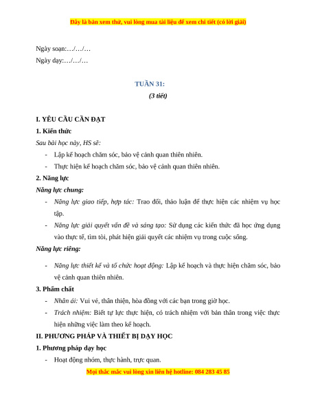 - Thực hiện kế hoạch chăm sóc, bảo vệ cảnh quan thiên nhiên. 2. Năng lực