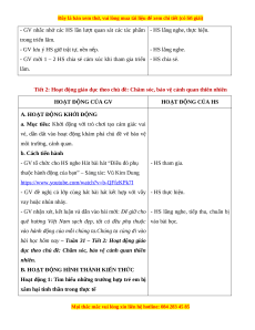 Tiết 2: Hoạt động giáo dục theo chủ đề: Chăm sóc, bảo vệ cảnh quan thiên nhiên HOẠT ĐỘNG CỦA GV HOẠT ĐỘNG CỦA HS
