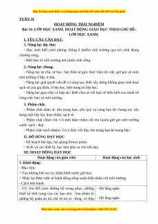 Bài 31: LỚP HỌC XANH. HOẠT ĐỘNG GIÁO DỤC THEO CHỦ ĐỀ: