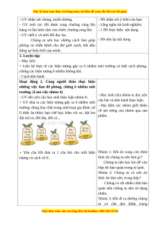 - Mục tiêu: Đưa ra được những hiểu biết của mình trong phòng, chống ô nhiễm môi