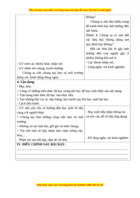 công việc bảo vệ môi trường. 3. Phẩm chất.