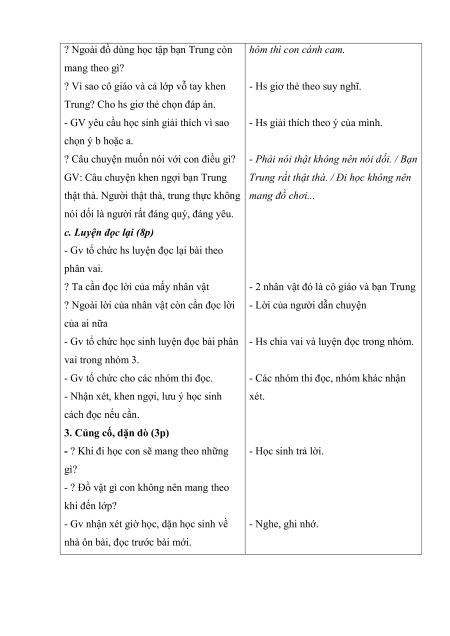 nói dối là người rất đáng quý, đáng yêu. c. Luyện đọc lại (8p)