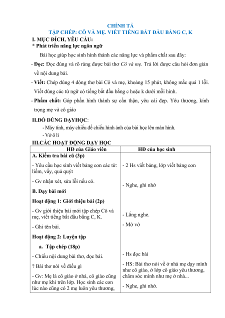 III.CÁC HOẠT ĐỘNG DẠY HỌC TIẾT 1 HĐ của Giáo viên HĐ của học sinh