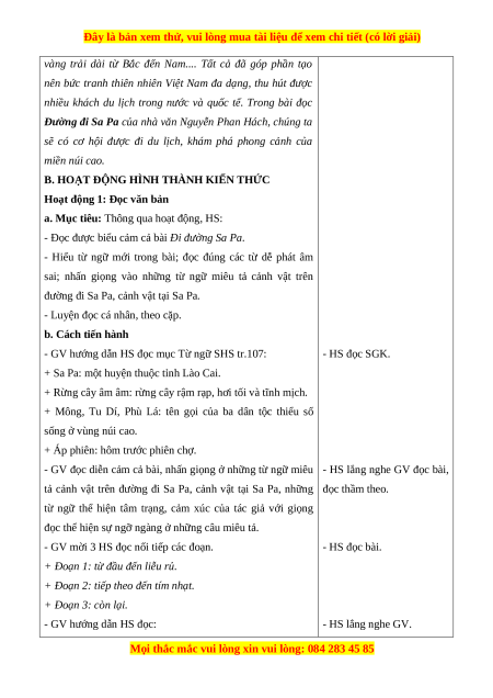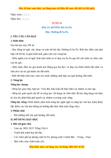 - Đọc đúng từ ngữ, câu, đoạn và toàn bộ bài đọc Đường đi Sa Pa. Biết đọc diễn cảm phù