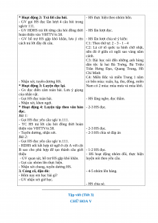 - YC HS trả lời câu hỏi đồng thời hoàn