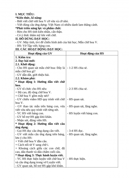 - Biết viết chữ viết hoa V cỡ vừa và cỡ nhỏ.