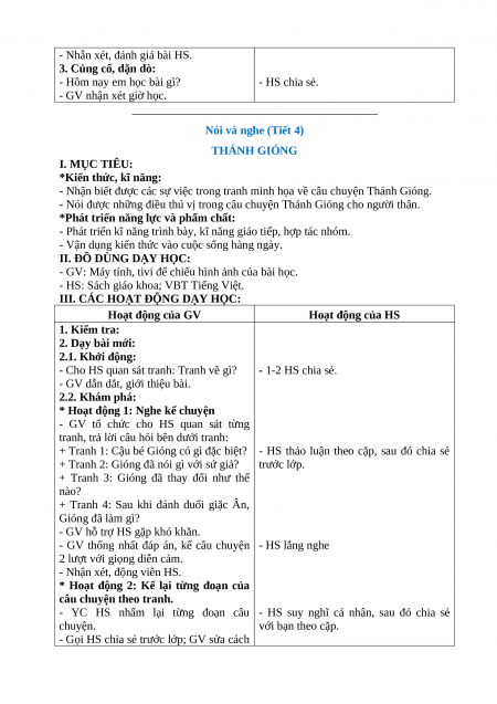 Nói và nghe (Tiết 4) THÁNH GIÓNG I. MỤC TIÊU: *Kiến thức, kĩ năng: