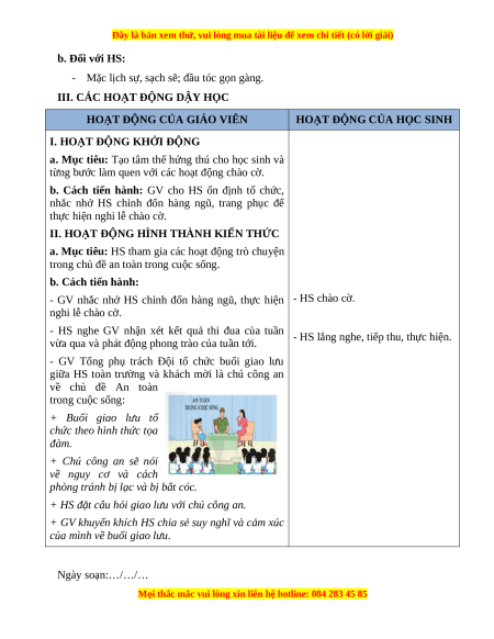 trong chủ đề an toàn trong cuộc sống. b. Cách tiến hành: