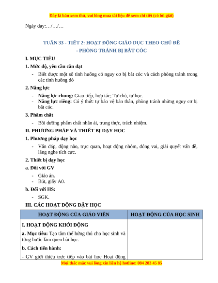 - Năng lực riêng: Có ý thức tự bảo vệ bản thân, phòng tránh những nguy cơ bị bắt cóc. 3. Phẩm chất