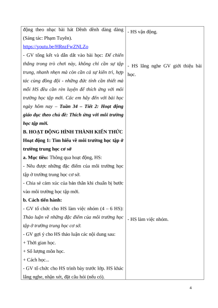 - Tìm hiểu được những đặc điểm của môi trường học tập ở trường trung học cơ sở.