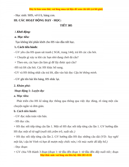III. CÁC HOẠT ĐỘNG DẠY - HỌC: TIẾT 385