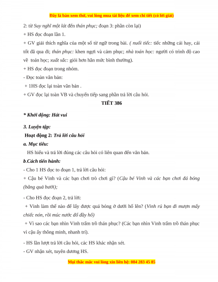 + GV đọc lại toàn VB và chuyển tiếp sang phần trả lời câu hỏi. TIẾT 386