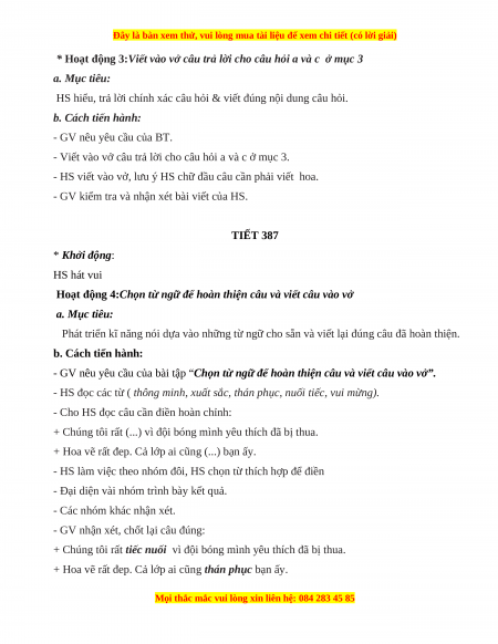 - GV kiểm tra và nhận xét bài viết của HS. TIẾT 387