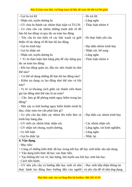 + HS trình bày được và thực hành những quy tắc an toàn khi lao động. - Cách tiến hành: