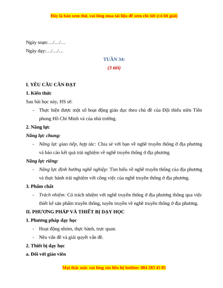 - GV có thể yêu cầu các lớp chuẩn bị thêm các tiết