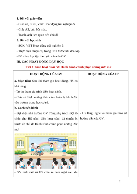 Tiết 1: Sinh hoạt dưới cờ: Hành trình chinh phục những ước mơ HOẠT ĐỘNG CỦA GV HOẠT ĐỘNG CỦA HS