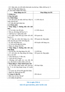 - GV: Máy tính, tivi để chiếu hình ảnh của bài học; Mẫu chữ hoa Q, V.