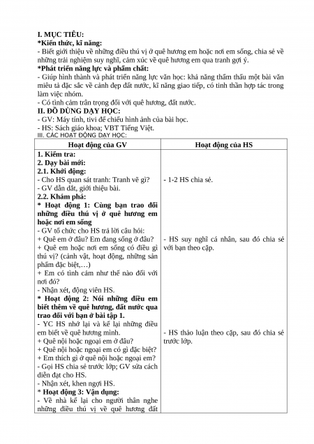 - Biết giới thiệu về những điều thú vị ở quê hương em hoặc nơi em sống, chia sẻ về