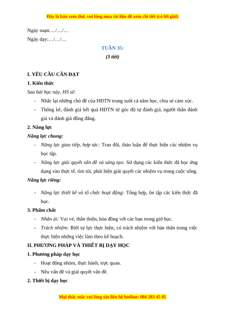 Giáo án Tuần 35 HĐTN lớp 4 Kết nối tri thức