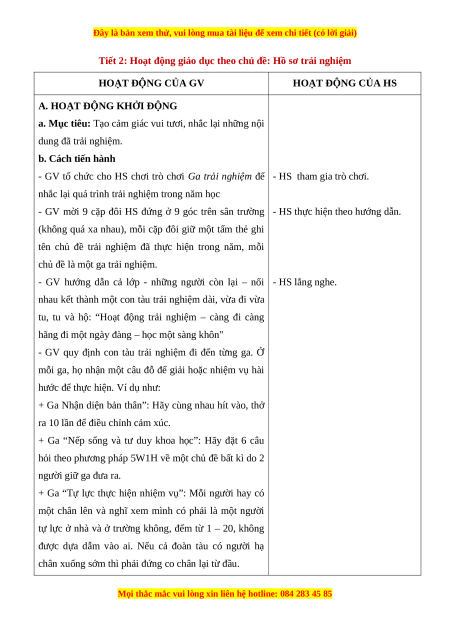 Tiết 2: Hoạt động giáo dục theo chủ đề: Hồ sơ trải nghiệm HOẠT ĐỘNG CỦA GV HOẠT ĐỘNG CỦA HS