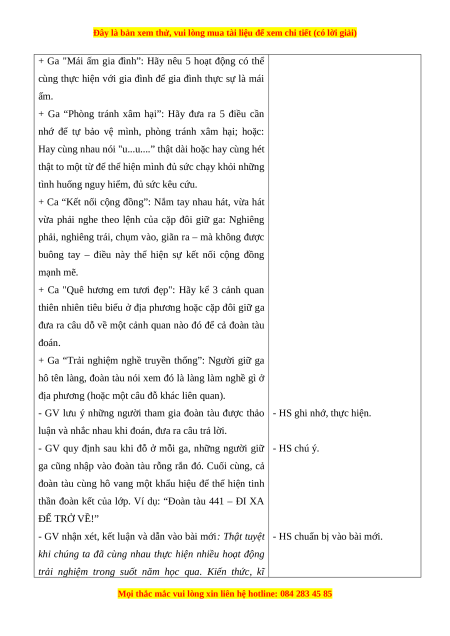 - GV lưu ý những người tham gia đoàn tàu được thảo - HS ghi nhớ, thực hiện.