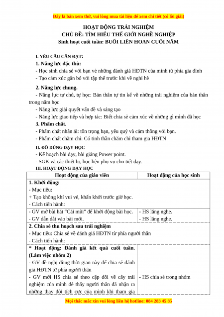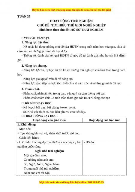 TÀI LIỆU BỘ BÁN CHẠY MÔN Hoạt động trải nghiệm