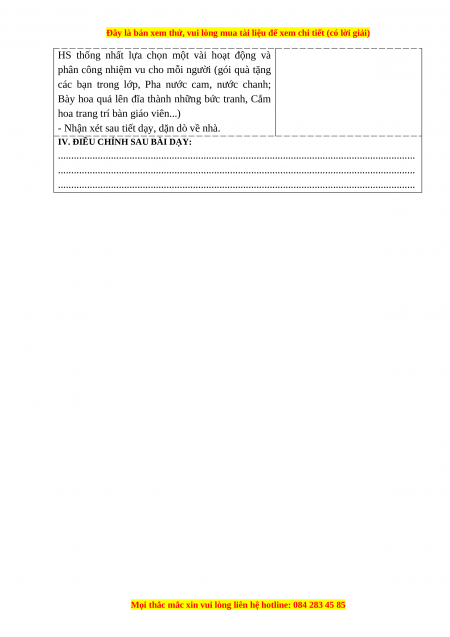 IV. ĐIỀU CHỈNH SAU BÀI DẠY: