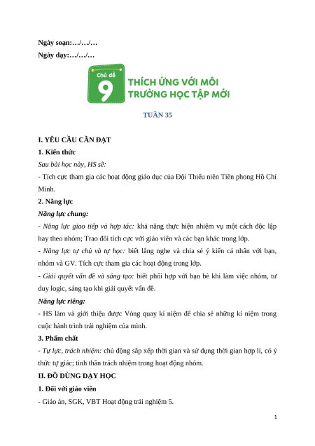 Ngày soạn:…/…/… Ngày dạy:…/…/… TUẦN 35