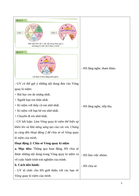 - HS làm và giới thiệu được Vòng quay kỉ niệm để chia sẻ những kỉ niệm trong