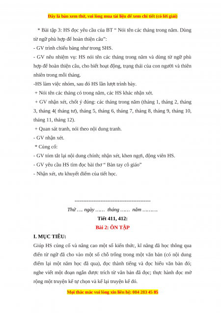 Thứ …. ngày …… tháng …… năm ………. Tiết 411, 412: Bài 2: ÔN TẬP I. MỤC TIÊU: