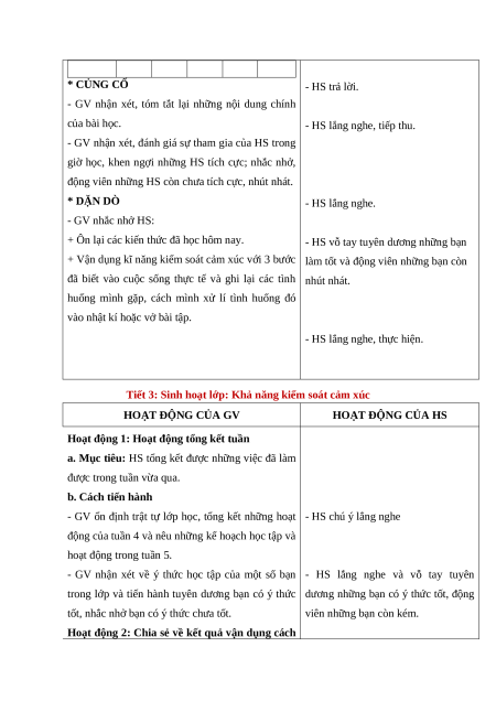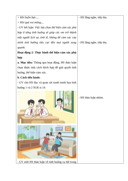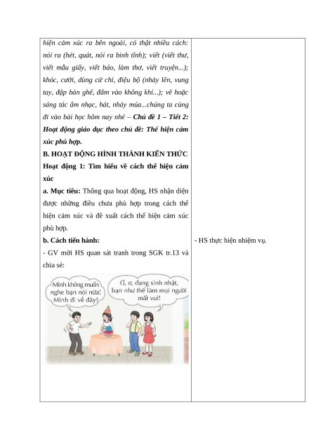 Tiết 2: Hoạt động giáo dục theo chủ đề: Thể hiện cảm xúc phù hợp HOẠT ĐỘNG CỦA GV HOẠT ĐỘNG CỦA HS