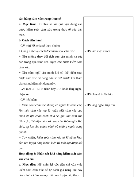 cuộc sống, từ đó chia sẻ những thay đổi tích cực trong việc kiểm soát cảm xúc. 3. Phẩm chất