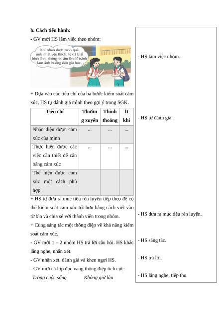 hiện cảm xúc và đề xuất cách thể hiện cảm xúc phù hợp. b. Cách tiến hành: