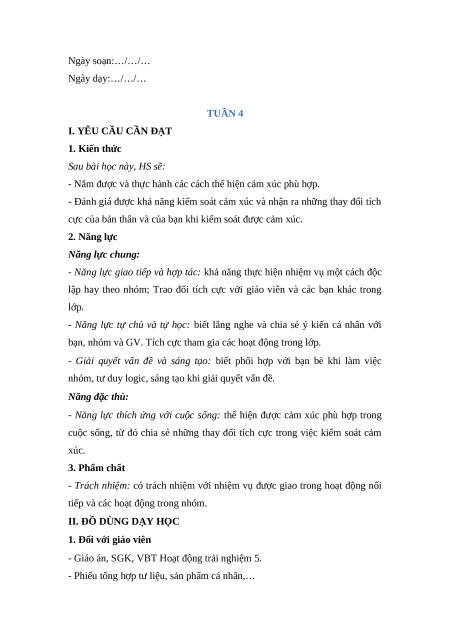 Ngày soạn:…/…/… Ngày dạy:…/…/… TUẦN 4