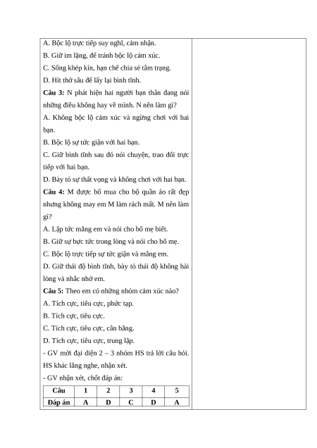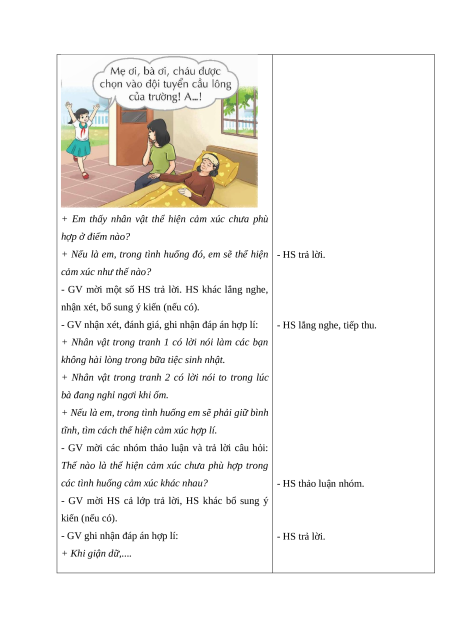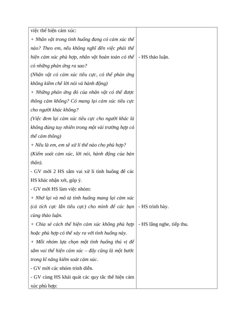 - Nắm được và thực hành các cách thể hiện cảm xúc phù hợp.