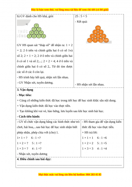 + Thực hiện được phép nhân, phép chia trong bảng đã học