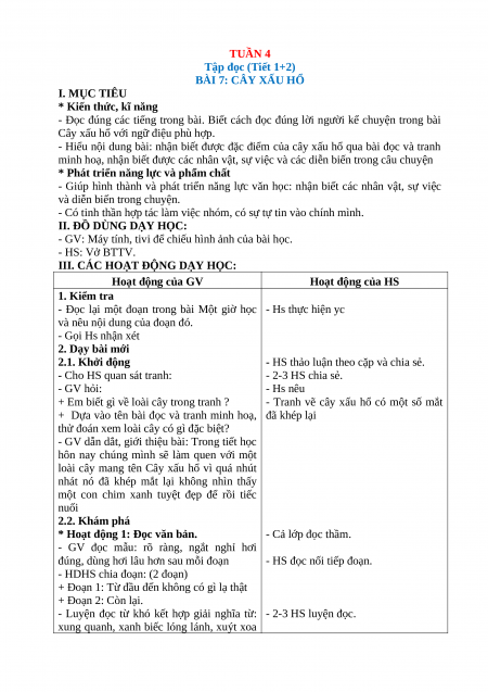 BÀI 7: CÂY XẤU HỔ I. MỤC TIÊU * Kiến thức, kĩ năng