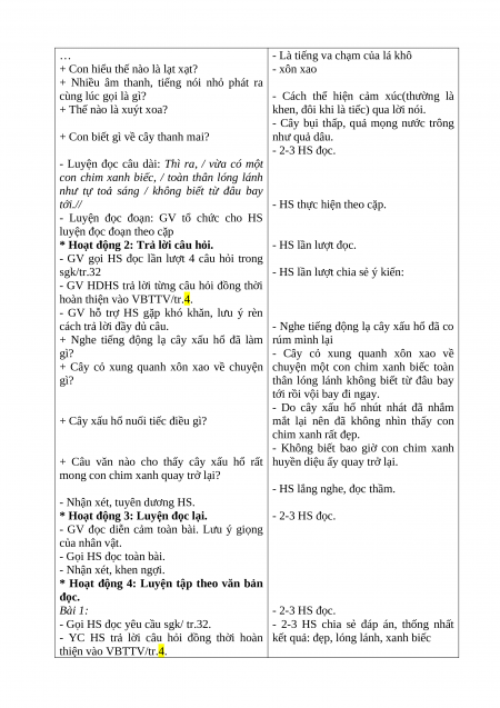- Hiểu nội dung bài: nhận biết được đặc điểm của cây xấu hổ qua bài đọc và tranh