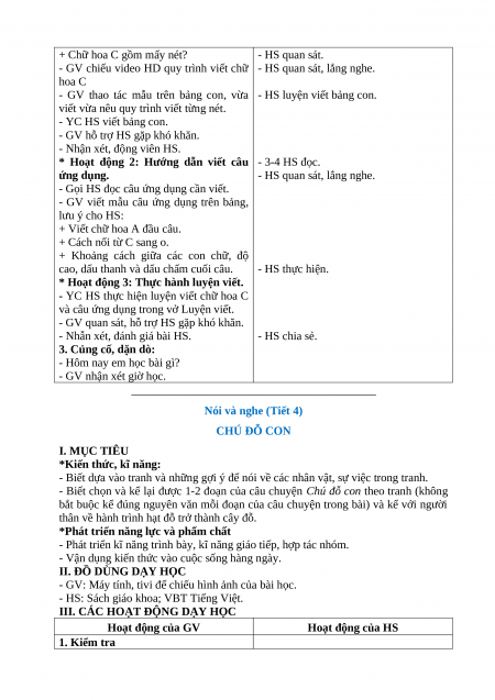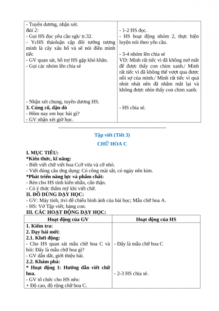 __________________________________________ Tập viết (Tiết 3) CHỮ HOA C I. MỤC TIÊU: *Kiến thức, kĩ năng: