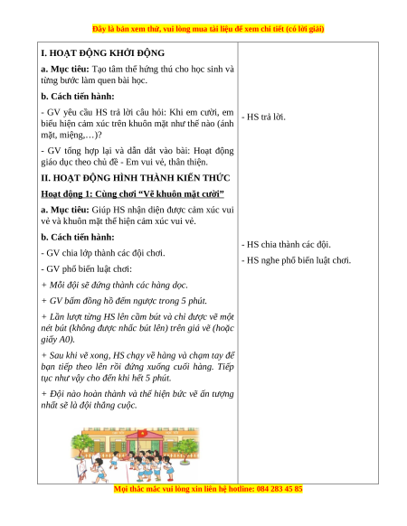 vẻ và khuôn mặt thể hiện cảm xúc vui vẻ. b. Cách tiến hành: - HS chia thành các đội.