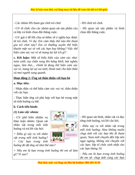 - Nhận diện được những việc làm thể hiện tình bạn và nói lời giao tiếp phù hợp với bạn. 2. Năng lực