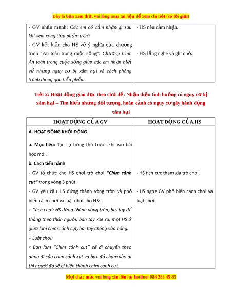 ữ g nguy cơ bị xâm h i ạ và cách phòng tránh thông qua ti u ể ph m ẩ . Tiết 2: Ho t ạ đ ng ộ giáo d c ụ theo ch ủ đ : ề Nh n ậ di n ệ tình hu ng ố có nguy c ơ bị xâm h i ạ – Tìm hi u ể nh ng ữ đ i ố tư ng ợ , hoàn c n ả h có nguy c ơ gây hành đ ng ộ xâm h i ạ HO T Ạ ĐỘNG C A Ủ GV HO T Ạ ĐỘNG C A Ủ HS