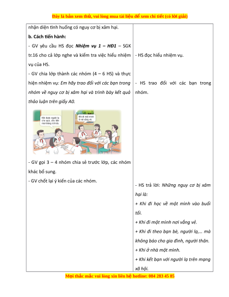 Hoạt động 1: Nhận diện tình huống có nguy cơ bị xâm hại