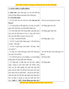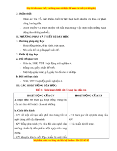 II. PHƯƠNG PHÁP VÀ THI T Ế B Ị D Y Ạ H C Ọ 1. Phư ng ơ pháp d y ạ h c ọ - Ho t ạ đ n ộ g nhóm, th c ự hành, tr c ự quan. - Nêu v n ấ đ ề và gi i ả quy t ế v n ấ đ . ề 2. Thi t ế b ị d y ạ h c ọ a. Đ i ố v i ớ giáo viên - Giáo án, SGK, VBT Ho t ạ đ n ộ g tr i ả nghi m ệ 4. - B n ả g con, gi y ấ , ph n ấ đ ể vi t ế . - M t ộ h p ộ gi y ấ ho c ặ gi , ỏ gi y ấ A5 đ ủ cho sĩ s ố l p ớ . b. Đ i ố v i ớ h c ọ sinh - SGK, VBT Ho t ạ đ n ộ g tr i ả nghi m ệ 4. III. CÁC HO T Ạ Đ N Ộ G DẠY H C Ọ : Tiết 1: Sinh ho t ạ dư i ớ c : ờ Trung thu c a ủ em HO T Ạ ĐỘNG C A Ủ GV HO T Ạ ĐỘNG C A Ủ HS a. M c