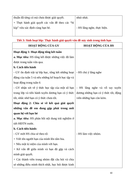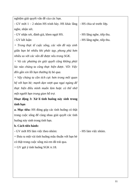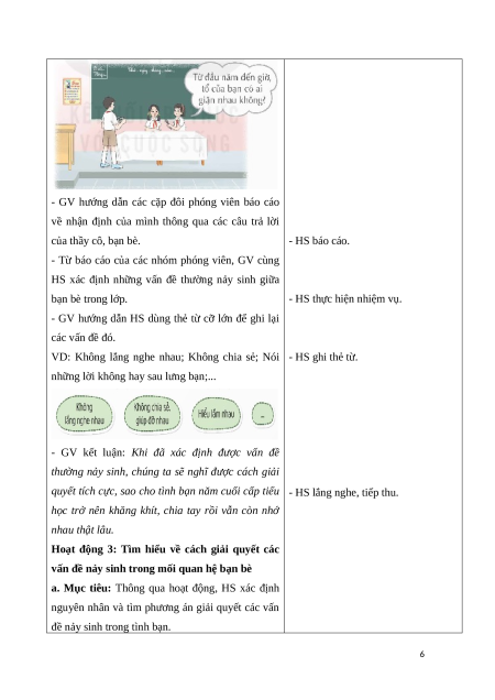 Các vấn đề nảy sinh trong mối quan hệ bạn bè và cách giải quyết HOẠT ĐỘNG CỦA GV HOẠT ĐỘNG CỦA HS
