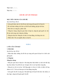 + Phẩm chất: Yêu con người, thầy cô, bạn bè. TUẦN 5