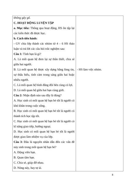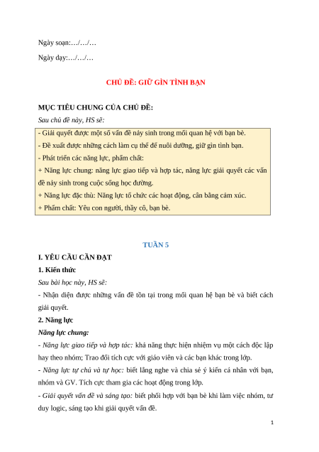 - Nhận diện được những vấn đề tồn tại trong mối quan hệ bạn bè và biết cách giải quyết. 2. Năng lực