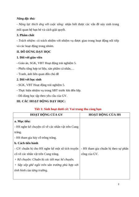 Tiết 1: Sinh hoạt dưới cờ: Vui trung thu cùng bạn HOẠT ĐỘNG CỦA GV HOẠT ĐỘNG CỦA HS a. Mục tiêu:
