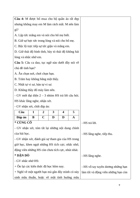 mối quan hệ bạn bè và cách giải quyết. 3. Phẩm chất